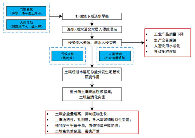 图3 海水入侵-土壤盐渍化灾害链式结构(改编自徐兴永等,海洋科学进展,2020)