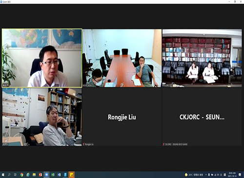 2021年10月14日,“黄海大型浮游植物藻华卫星遥感监测技术研究”课题召开2021年度第二次技术会议。受新冠肺炎疫情影响,本次会议采用视频会议的方式举行。课题中方负责人崔廷伟教授和刘荣杰副研究员、韩方负责人柳周衡研究员、中韩中心崔东林副主任及课题组相关成员参加了会议。