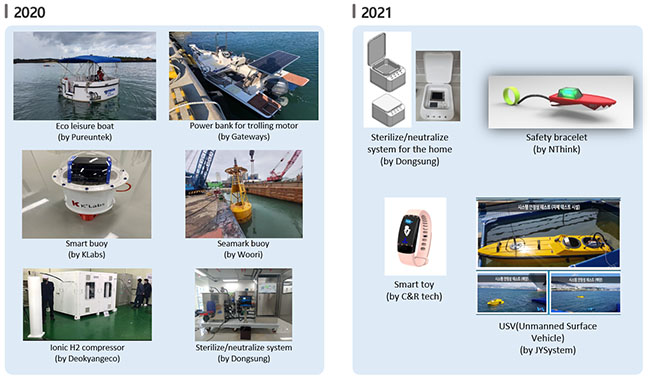 能够长时间在实际海域使用的海水电池系统开发工作取得了重要进展,下一步是将海水电池实际应用到海洋设备,获得业绩记录(track-record)。2020年,韩国海洋科学技术院与多家海水电池潜在需求单位进行合作,开发出采用海水电池的环保型休闲艇、小型船舶用辅助供电装置、海洋环境监测用多功能浮标、航标灯浮标、200L级海水杀菌中和系统。2021年,还开发出采用海水电池的5L级储能及杀菌中和系统、海洋遇险人员安全管理系统、水上乐园腕带、观测及探测用无人水面艇。