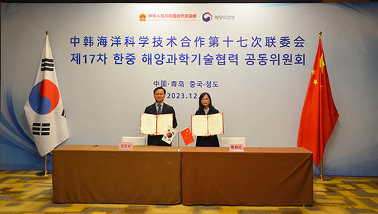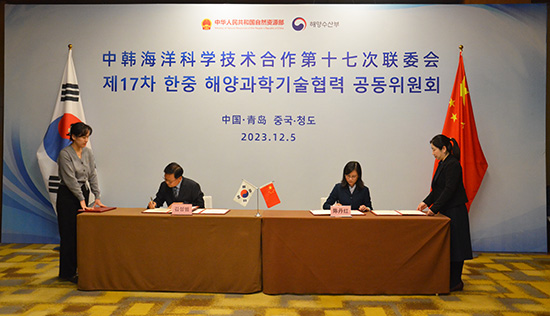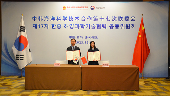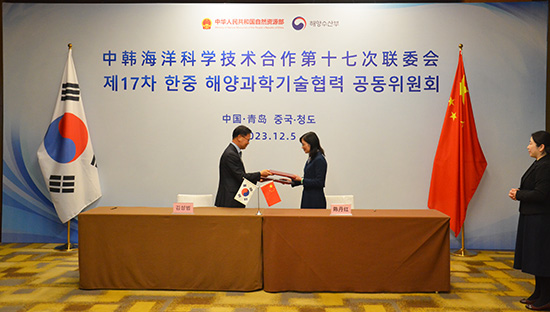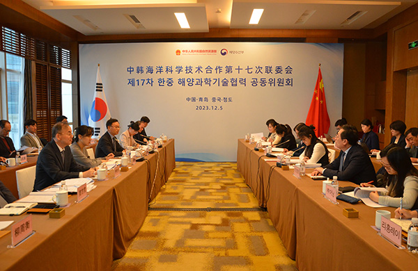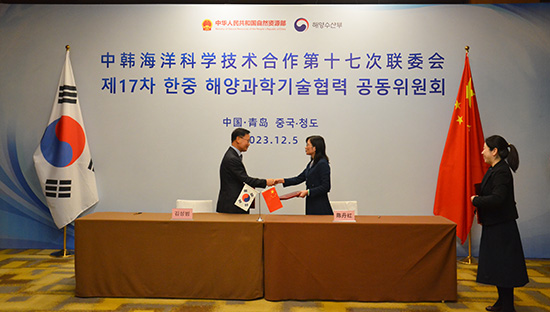 2023年12月5日,中韩海洋科学技术合作联合委员会(以下简称“联委会”)第十七次会议在青岛召开。以中国自然资源部陈丹红司长为团长的中方代表团和以韩国海洋水产部金晟范局长为团长的韩方代表团出席了本次会议。