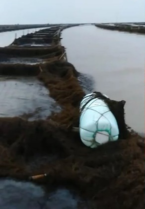 그림2. 장쑤성 북부 여울의 김 양식 구역에 부유 금조가 침입한 장면 (2020년 1월 14일)