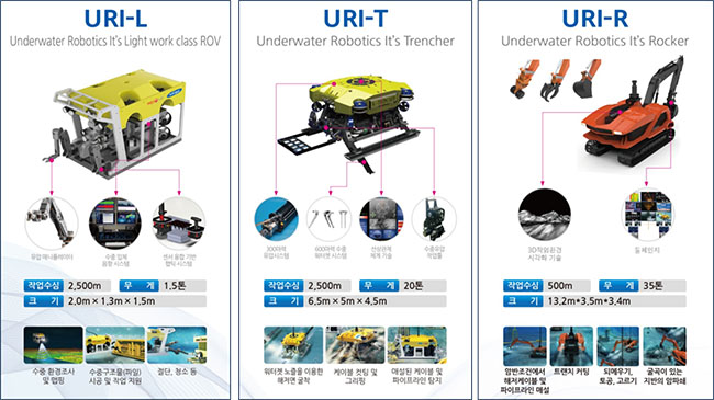 이미 2019년 12월 통영 욕지도 상수관로 공사를 시작으로 태평양 심해저 해양생물 채취(URI-L. 그림 5, 베트남 가스관로 공사(URI-T, 그림 6), 거제도 상수관로 공사(URI-R, 그림 7) 등 다양한 현장에 투입하여 실적을 확보하고 있는 중이다.