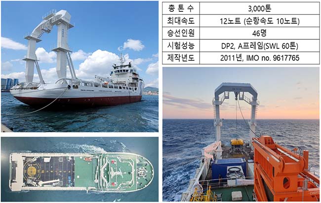 한편, 수중건설로봇과 같은 해양장비 실해역 성능 검증을 위한 3,000ton급 시험평가 선박인 장영실호(DP2, 60톤 A-Frame 등 탑재, 그림 10)가 구축되어 보다 효율적이면서 효과적인 성능평가 및 현장 적용이 가능하게 됨으로써 한층 더 경쟁력을 확보하게 되었다.
