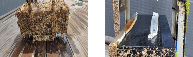 그림 7. 부착생물 제어 기술 검증(좌: 미적용, 우: 적용)