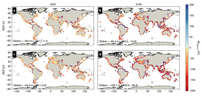 그림 4 다양한 RCP에서의 사질 해안 침식추세